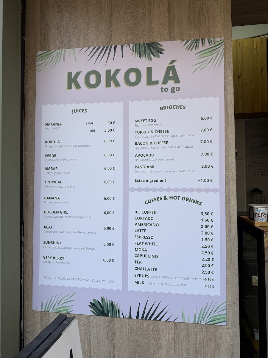 Kokolá to go Menu